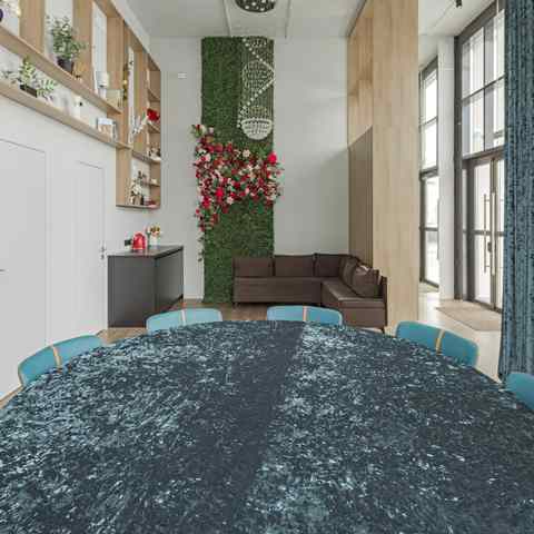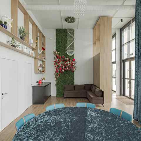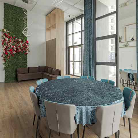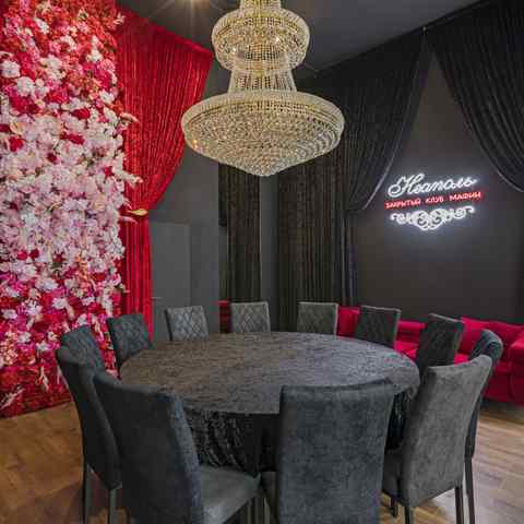 В арт-пространстве представлены два независимых дизайнерских зала — светлый «Венеция» и тёмный «Неаполь». Каждый зал имеет собственный вход, санузел и уникальную эстетику. «Венеция» оформлена в светлой палитре с акцентом на мягкое естественное освещение и пастельные оттенки, создавая ощущение лёгкости и вдохновения. «Неаполь» выполнен в глубоких благородных тонах с бархатными фактурами, атмосферной подсветкой и выразительными декоративными акцентами, что делает его идеальной площадкой для вечерних событий и камерных ужинов.